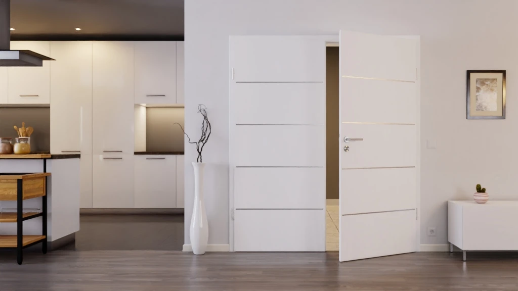 Standardmäßig sind die Lisenen aufgesetzt. Sie haben außerdem die Möglichkeit, eine flächenbündige Version zu wählen. Im Inneren des Türblatts befindet sich eine Röhrenspanplatte.
