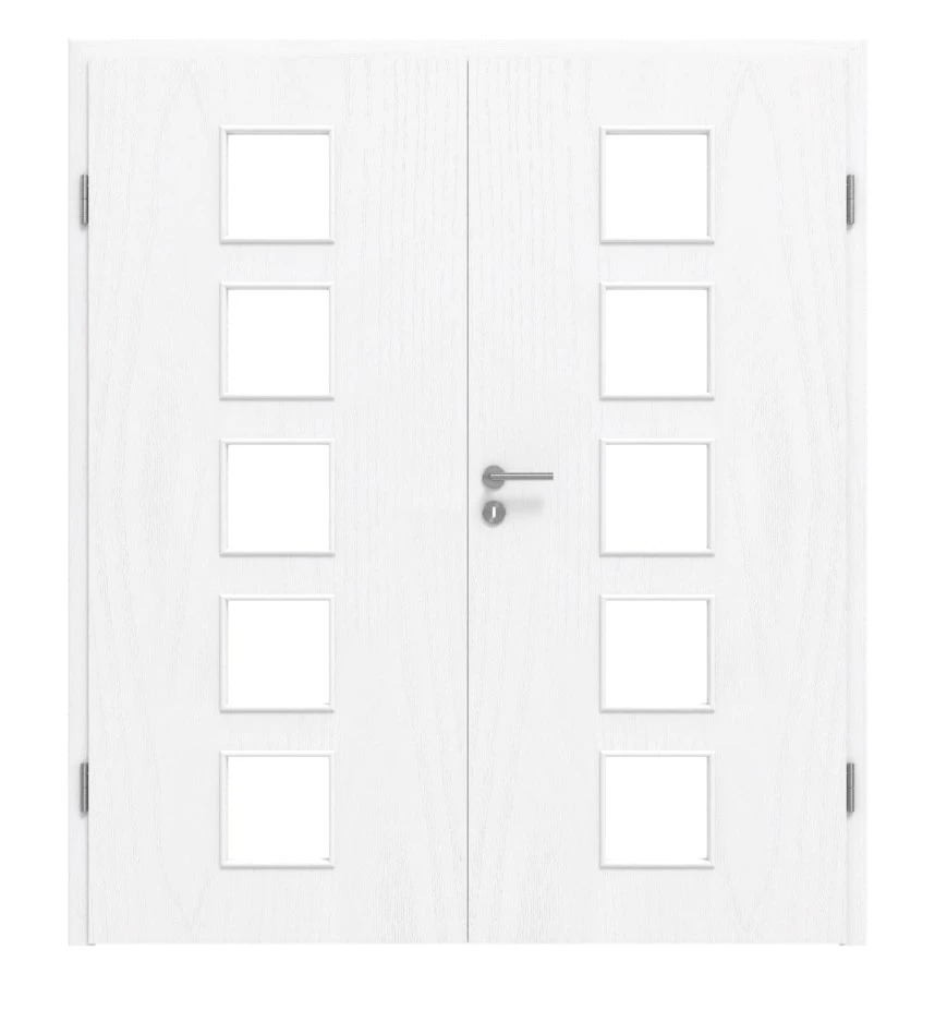 Die Doppelflügeltürblätter beinhalten insgesamt zehn quadratische Lichtausschnitte, die gemeinsam ein spannendes Design ergeben. Zusätzlich gelangt auf diese Art und Weise Helligkeit in Ihren Raum.
