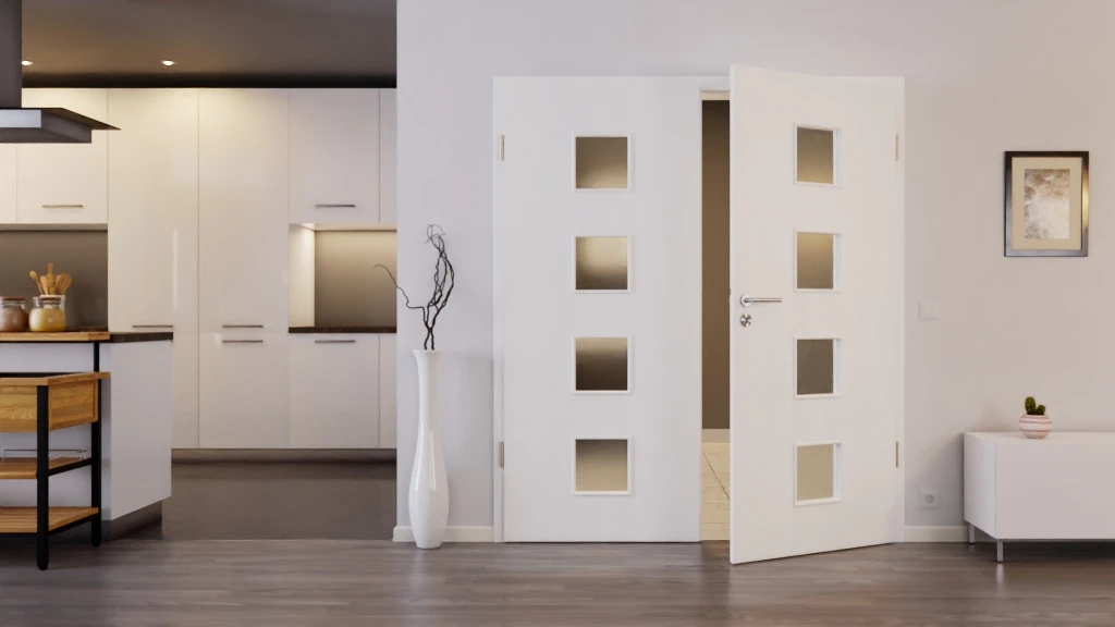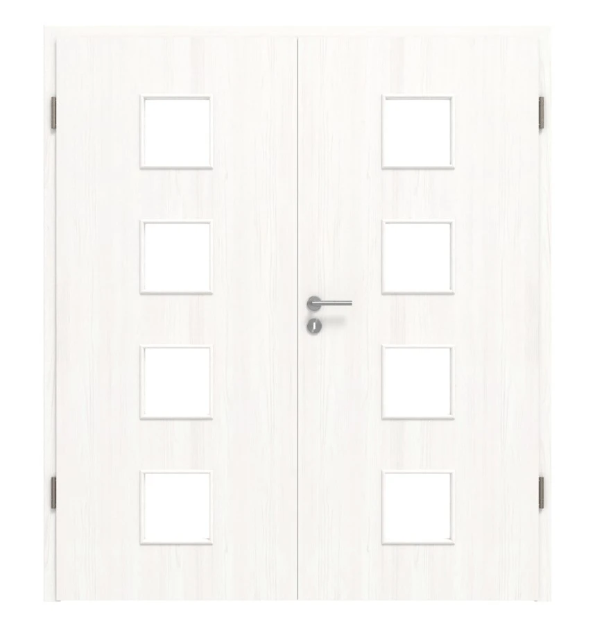 Vier quadratische Glasausschnitte sind in der Mitte des Türblatts eingelassen. Sie fungieren als optisches Highlight Ihrer Tür, lockern den Gesamteindruck gekonnt auf und lassen viel Helligkeit in Ihren Raum.
