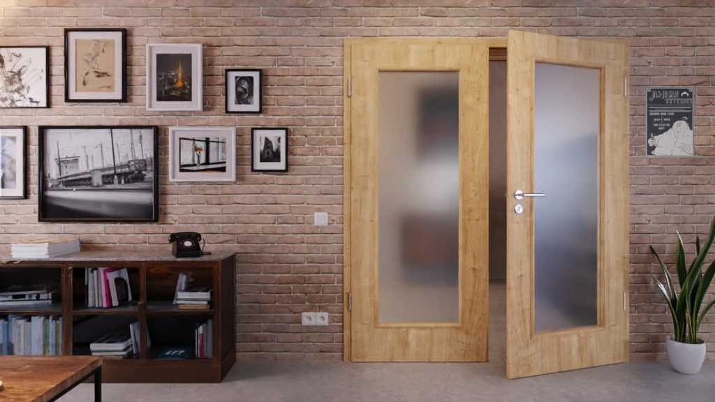 Innentür mit zwei Flügeln und widerstandsfähiger Oberfläche in Wildeiche: