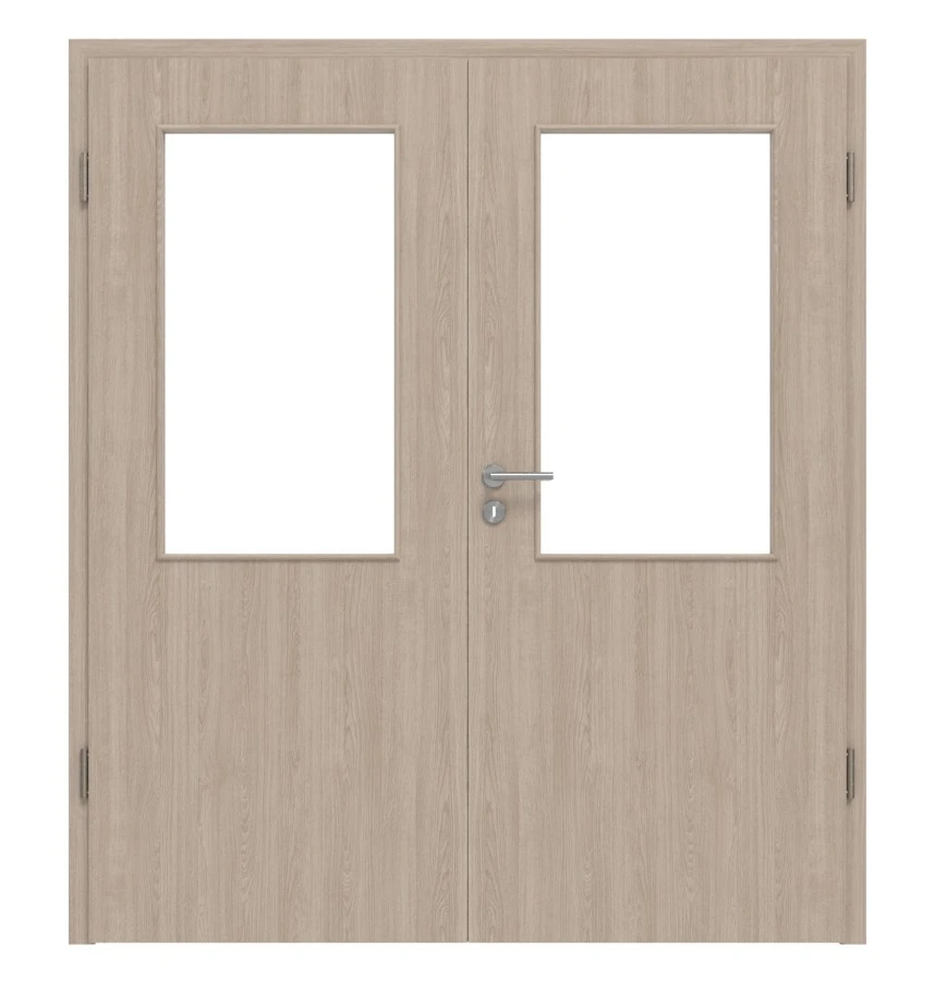 Dauerhafte ProLine-Doppelflügeltür in Graueiche mit stabiler Vollspanplatte und dreiteiligen Bändern: