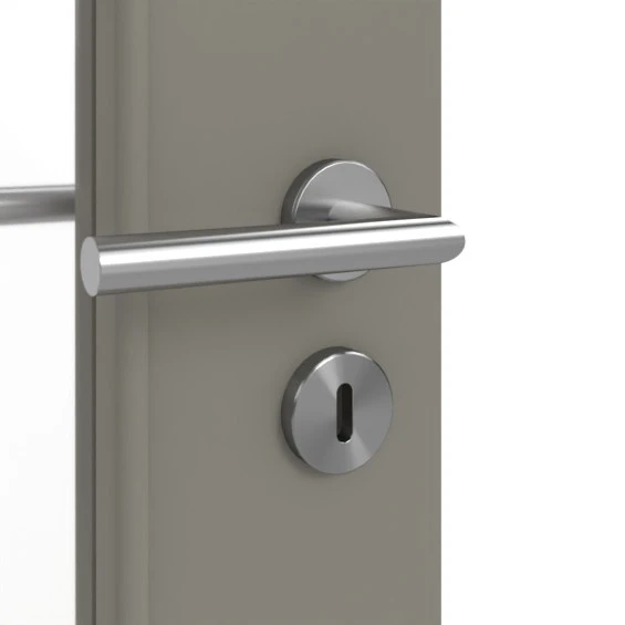 Eingefräste, waagerechte Linien kennzeichnen das Modell. Auf der Schlossseite befindet sich jeweils ein schmaler Glasausschnitt, durch den viel Licht in Ihr Zuhause dringt. Dank grauer Lackoberfläche passt sich das Modell jedem Wohnraumdesign an.