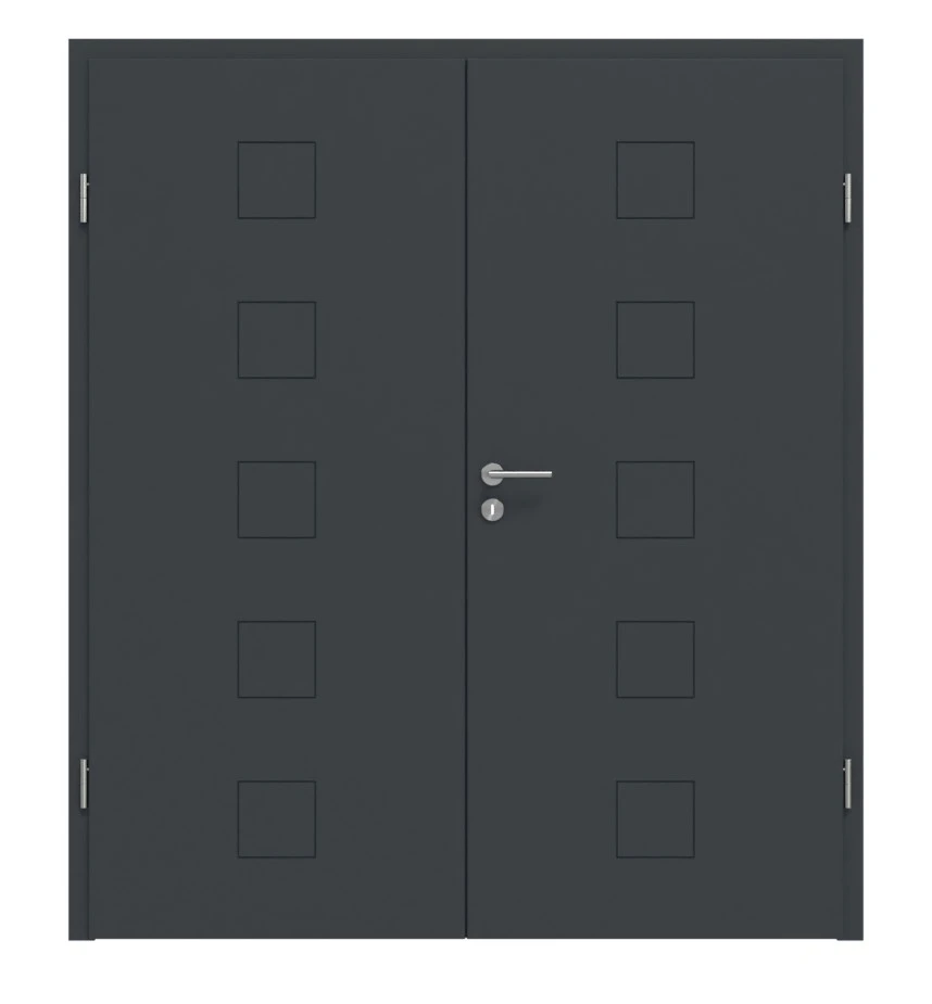 Fünf kleine Quadrate zeichnen sich dank der eingefrästen Fugen in der Mitte des jeweiligen Türblatts ab. Die anthrazitfarbene, erstklassige Lackierung unterstreicht die geschmackvolle Optik.