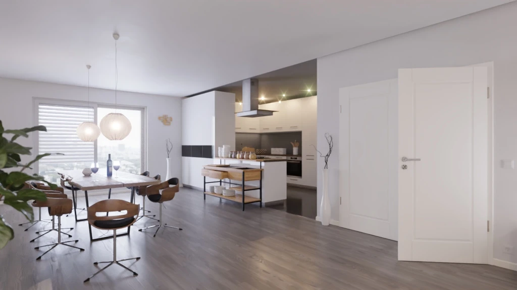 - Doppelflügeltür mit moderner Weißlackoberfläche