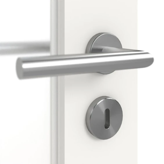 Die Weißlack-Deckschicht ist standardmäßig RAL 9016. Gegen einen Aufpreis können Sie sich auch für eine Oberfläche in RAL 9010 entscheiden. Neben Modellen mit eckigen Kanten können Sie die Tür auch mit runden Ecken wählen.