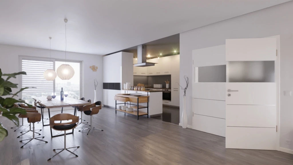 Selbst bei starker Nutzung garantiert die Vollspanplatte im Kern beider Türflügel Stabilität. Bereits im Standard sind die Bänder dreiteilig, was eine zuverlässige Verbindung zwischen den Türblättern und der Zarge gewährleistet.