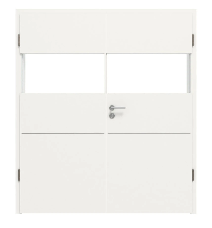 Stabilität, Alltagstauglichkeit, Eleganz: Die langlebige Doppelflügeltür Pure 2 quer Plain 79-7 in Weißlack von Hörmann sorgt für ein offenes Ambiente in Ihrem Zuhause.