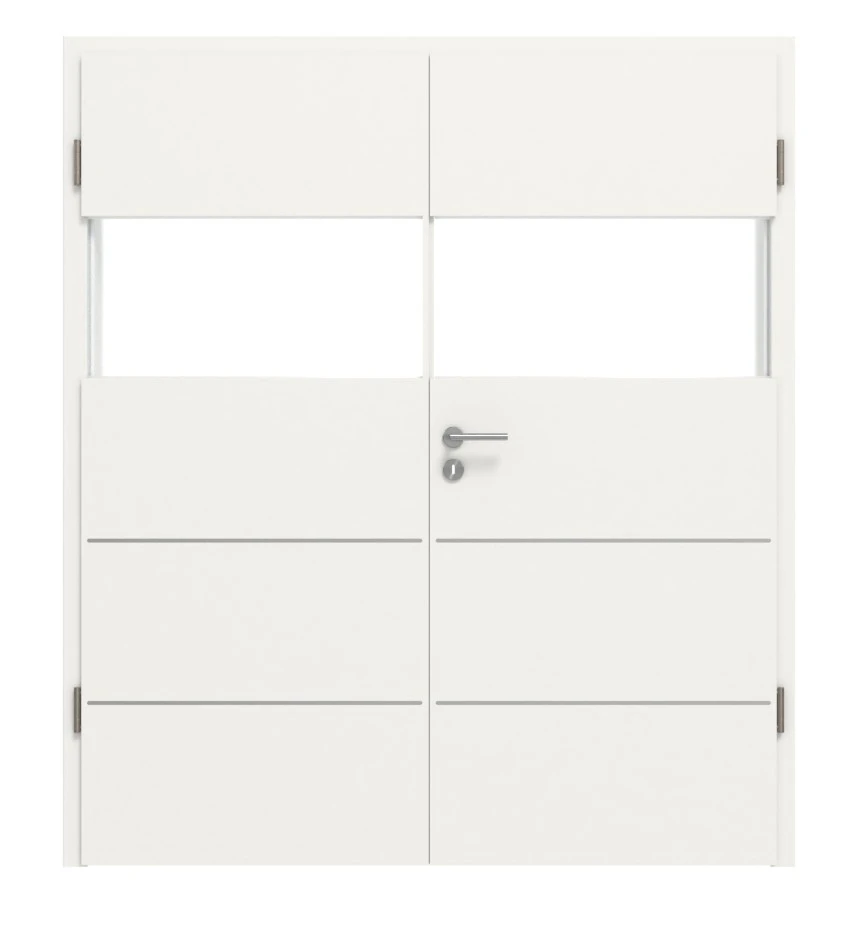 Hohe Alltagstauglichkeit, individuelle Eleganz: Die Doppelflügeltür Pure 2 quer Plain 80-7 in Weißlack von Hörmann bringt Offenheit in Ihre vier Wände.