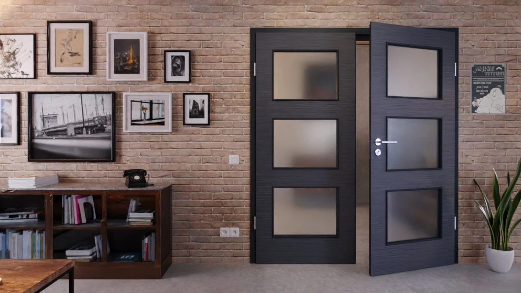 Robuste Innentür mit zwei Flügeln und kratzfester Beschichtung in Schiefer Anthrazit: