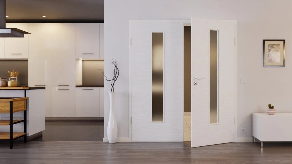 Robuste Innentür mit zwei Flügeln und kratzfester Beschichtung in Schiefer Weiß: