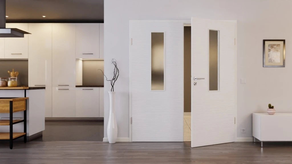 - Zweiflüglige Tür mit alltagstauglicher Duradecor-Deckschicht in Schiefer Weiß