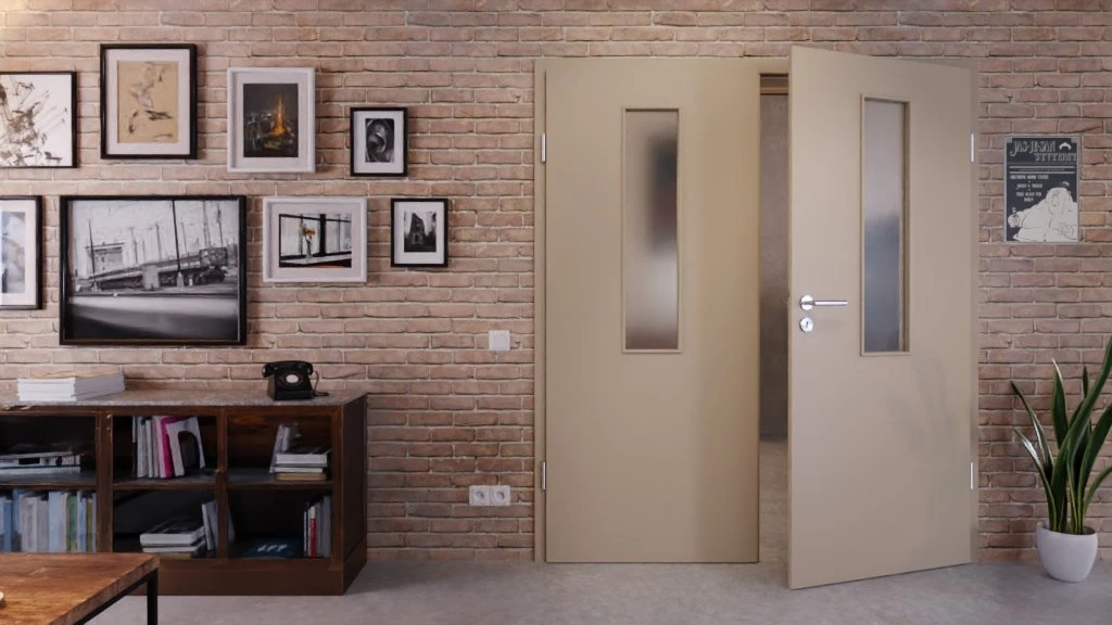Stabiles Innentürmodell mit zwei Flügeln und stoßfester Laminatoberfläche in Ultramatt Taupe: