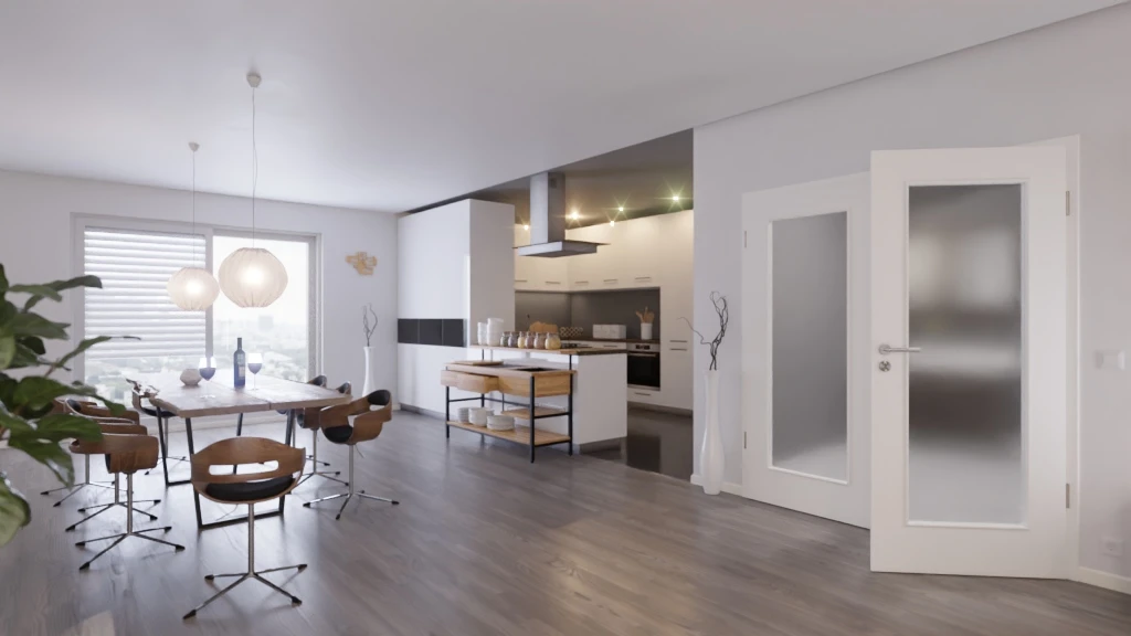Der Glasausschnitt erstreckt sich über nahezu das gesamte Türblatt. Dadurch gewährleistet er einen massiven Helligkeitseinfall und generiert auf diese Art und Weise einen lichtdurchfluteten Raum.