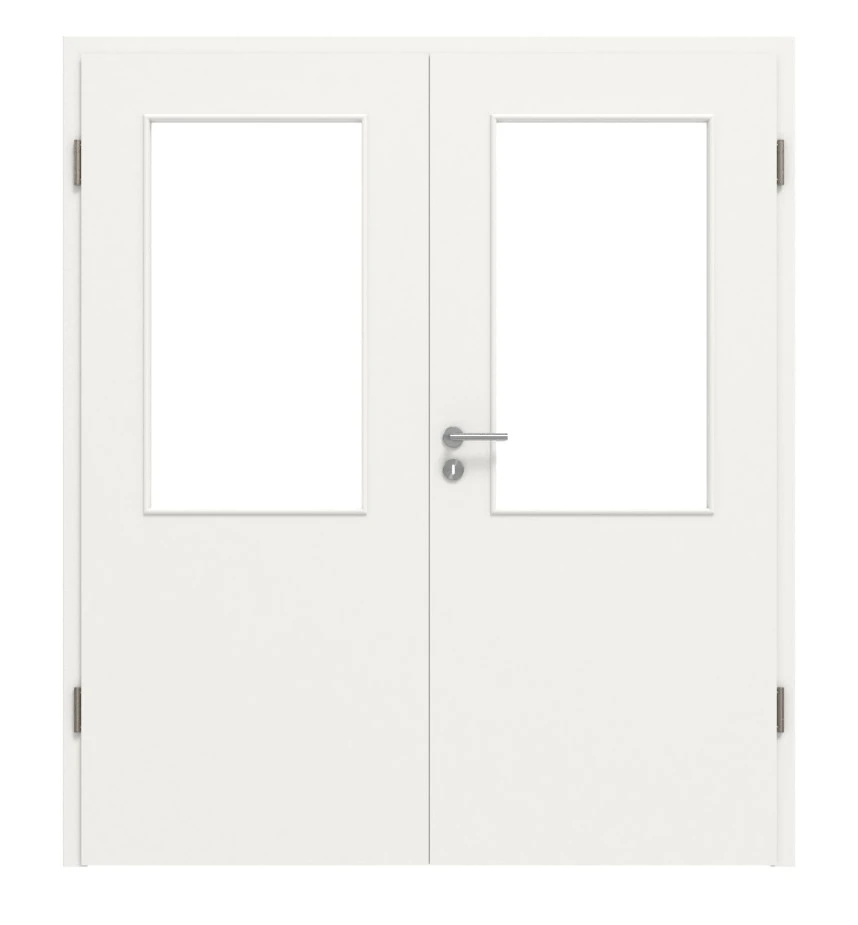 Lackierte ProLine-Doppelflügeltür in RAL 9016 inklusive Vollspanplatte & dreiteiligen Bändern: