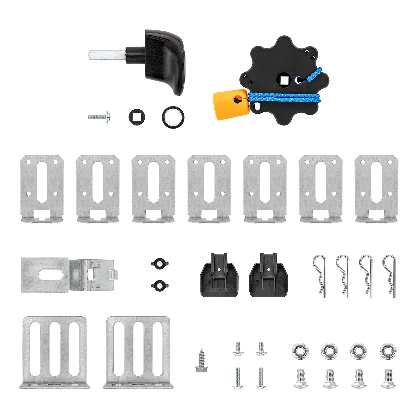 Das Hörmann Einbau-Zubehör N80 enthält sämtliche Zubehörteile, die für die Montage von Hörmann Schwingtoren der Ausführung N80 benötigt werden. Dieses Set kann bei der Montage des Tores, aber auch für den Austausch einzelner Torkomponenten bei Beschädigung oder Korrosion verwendet werden.