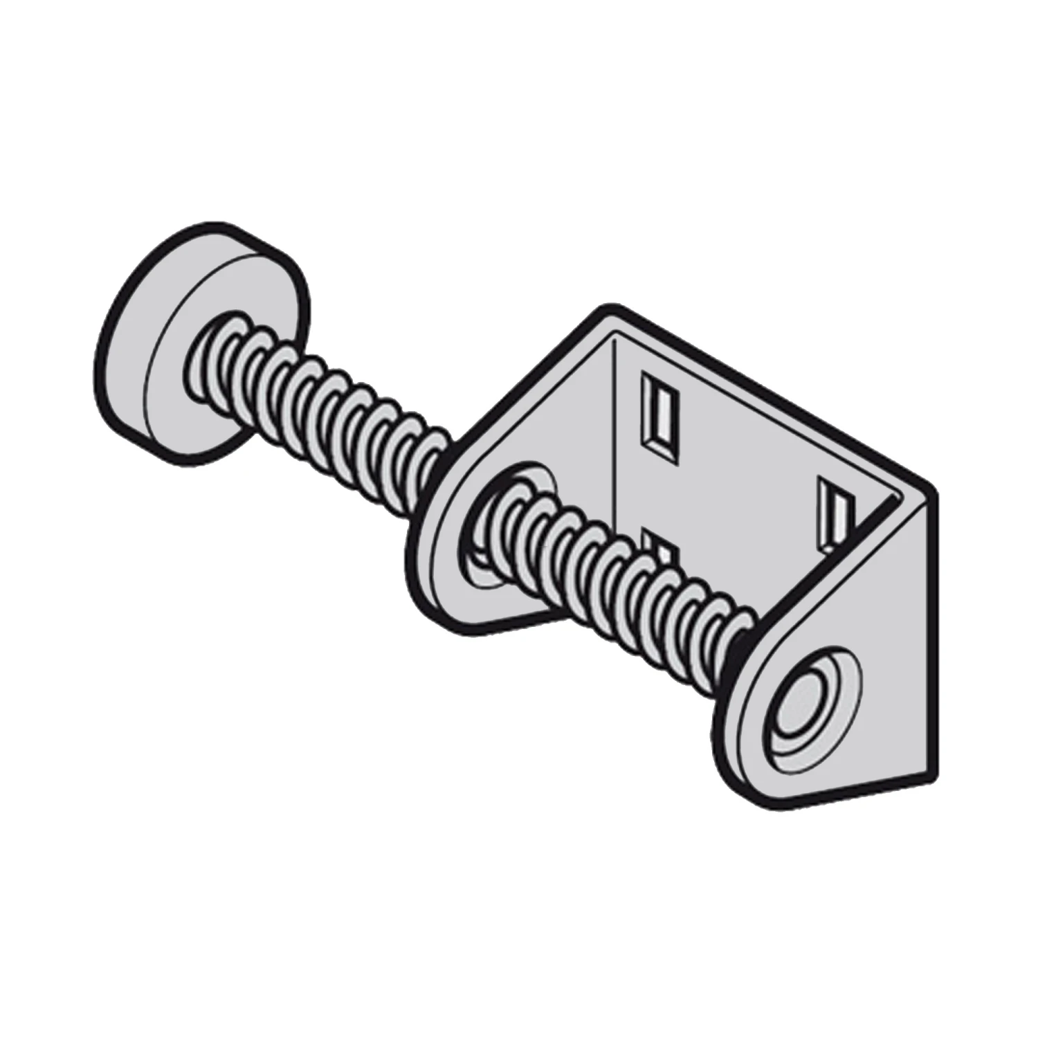 Die Befestigung des Federpuffers kann je nach Beschlagsart an verschiedenen Positionen in waagerechter oder vertikaler Ausrichtung erfolgen. In der Regel wird dieser jedoch am hinteren Ende der Laufschienenkonstruktion in waagerechter Ausrichtung auf der rechten und linken Torseite montiert und sorgt dort für die gewünschte Sicherung sowie den notwendigen Anschub für den Schließvorgang. Für die Befestigung ist die Federstopperkonsole notwendig, die in passenden Ausführungen für die jeweilige Beschlagsart angeboten wird. Auf dieser erfolgt dann die Montage des Federpuffers mit Flachkopfschrauben M8x16 und den passenden Sechskantmuttern mit Hohlflansch.