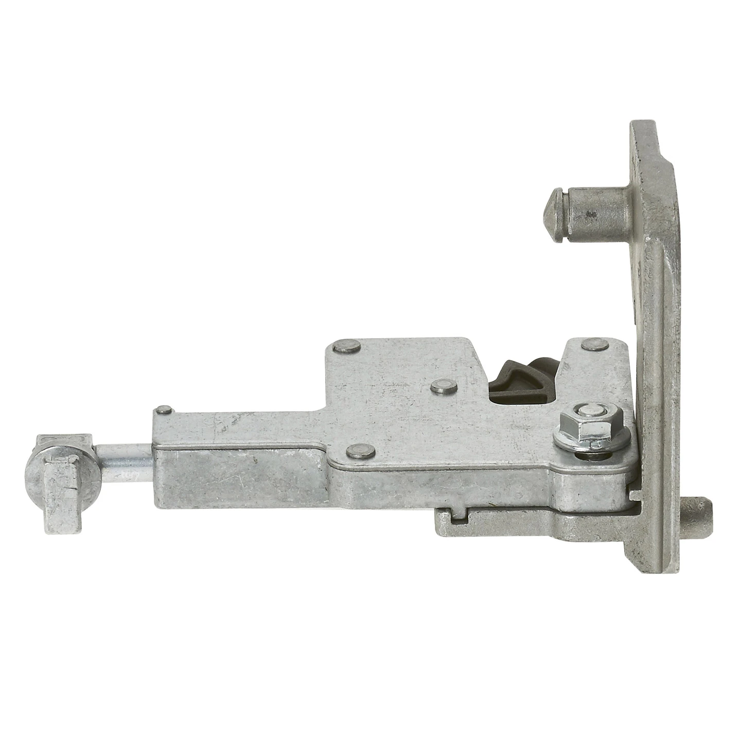 Das Hebelverschlusslager mit Drehfalle erfüllt eine wesentliche Funktion für den sicheren Torbetrieb und sollte bei einem Defekt umgehend ausgetauscht werden. Hierbei handelt es sich um die Ausführung für die linke Torseite. Die Ansicht erfolgt dabei immer von innen.