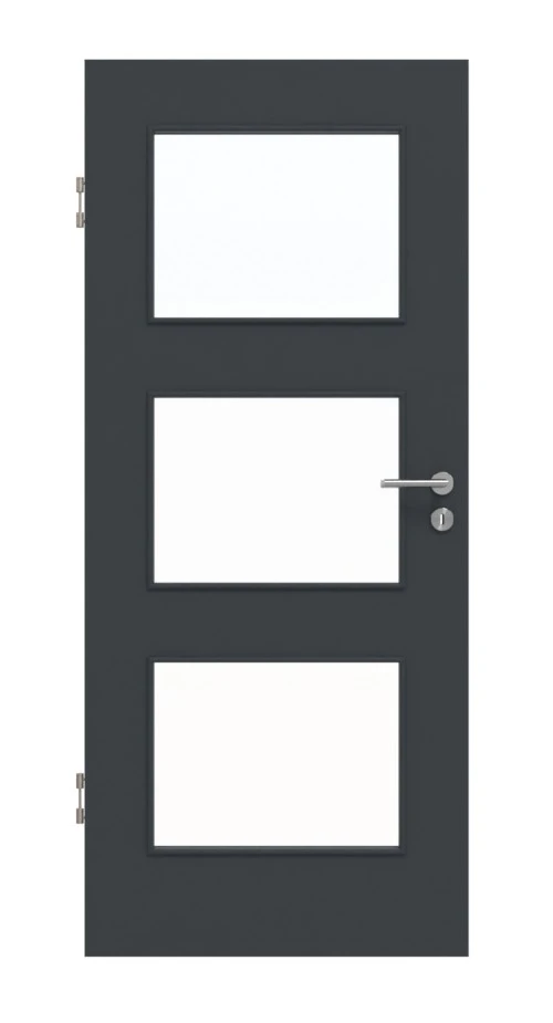 In das Türblatt sind drei große Lichtausschnitte eingelassen. Die hochwertige Lackierung in Anthrazit garantiert einen brillanten Glanz.