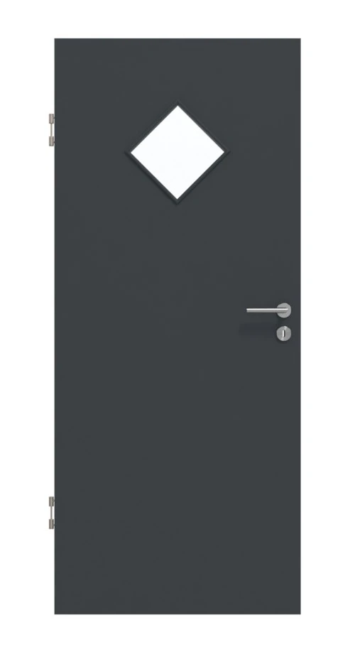 Auf Augenhöhe befindet sich ein rautenförmiger Lichtausschnitt. Einen ästhetischen Touch garantiert die Deckschicht in Anthrazit.