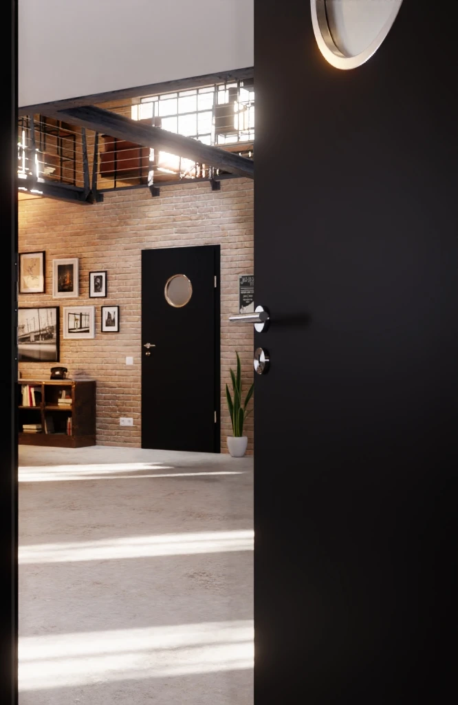 Zuhause mit Stil: Mit der ProLine-Innentür in Anthrazit RAL 7016 mit LA Bullauge von Hörmann schaffen Sie eine behagliche Atmosphäre in Ihren vier Wänden.