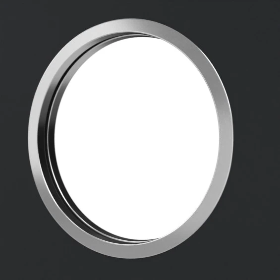 Einen modernen Look erzeugt die matte Lackoberfläche, die in einem dunklen Anthrazitton daherkommt. Der runde Lichtausschnitt erinnert an ein Schiffsfenster.
