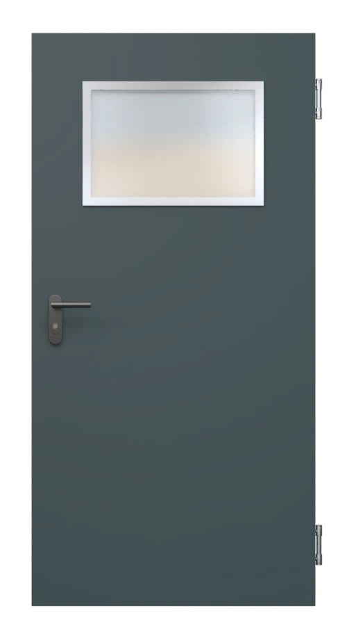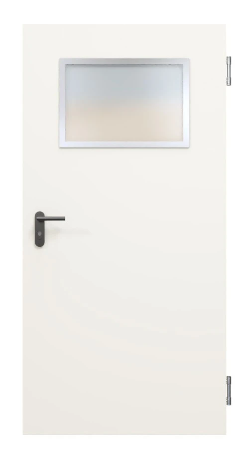 Das Türblatt besteht aus einer Röhrenspaneinlage, woraus auch die Robustheit resultiert. Zur Ausstattung gehören ein Buntbartschloss und glanzverzinkte Bandoberteile.