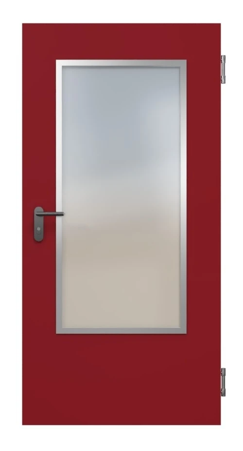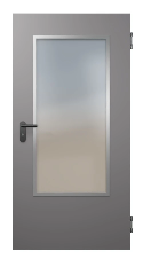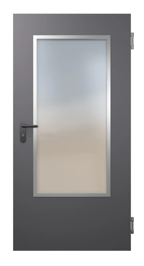- Konstruktion: doppelwandiges, 40 mm dickes Türblatt mit 3-seitigem Dickfalz, verzinktem Stahlblech (0,6 mm) und vollflächig verklebter Wabeneinlage