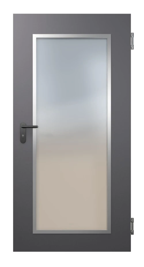 - Konstruktion: doppelwandiges, 40 mm dickes Türblatt mit 3-seitigem Dickfalz, verzinktem Stahlblech (0,6 mm) und vollflächig verklebter Wabeneinlage