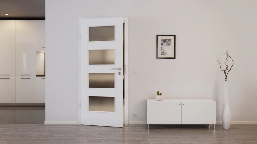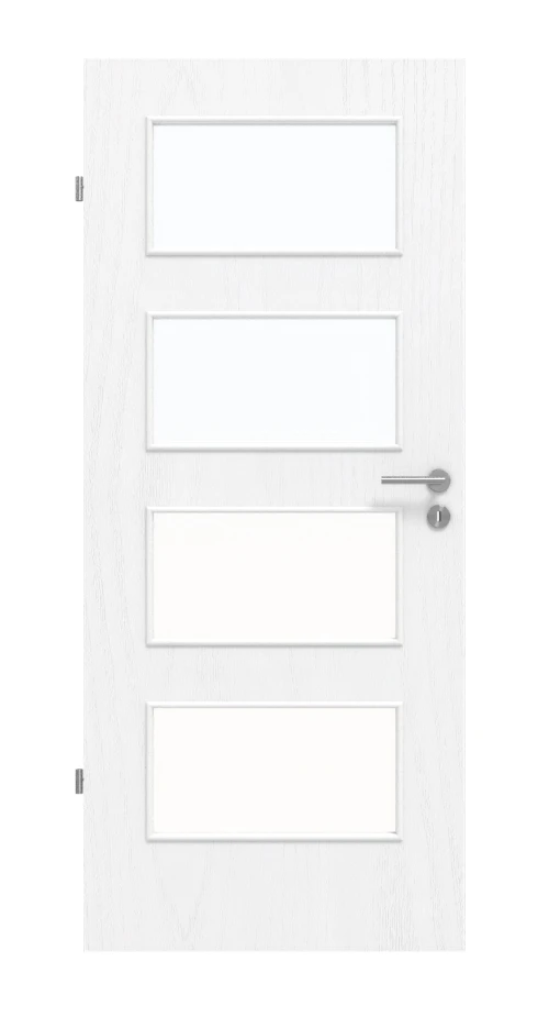 Vier rechteckige Lichtausschnitte lassen nicht nur viel Helligkeit durch, sondern verzieren das Türblatt auch auf angenehme Art und Weise.