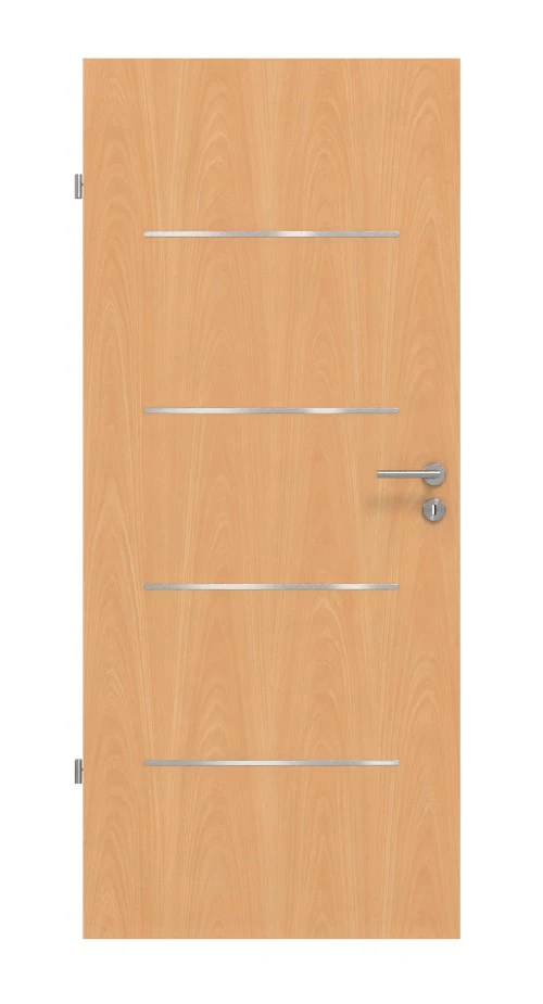 - Design-Besonderheiten: Türblatt mit aufgelegten Applikationen in Edelstahl‑Optik, Breite 10 mm