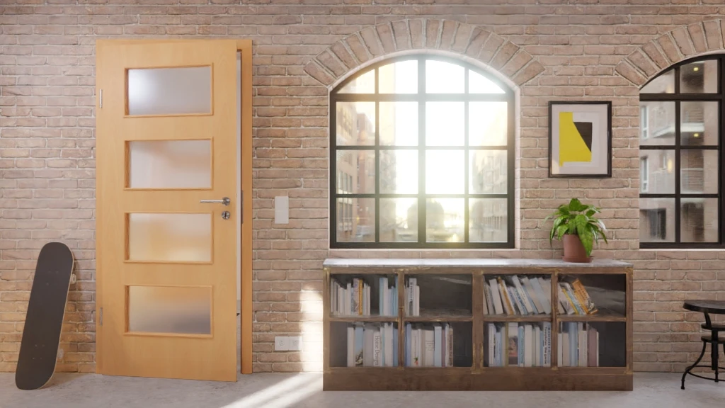 Vier rechteckige Lichtausschnitte lassen nicht nur viel Helligkeit durch, sondern verzieren das Türblatt auch auf angenehme Art und Weise.