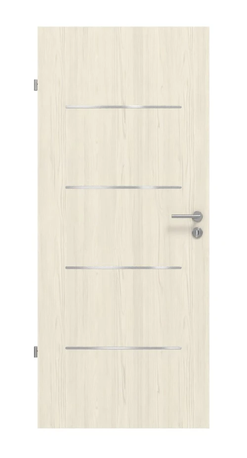 - Design-Besonderheiten: Türblatt mit aufgelegten Applikationen in Edelstahl‑Optik, Breite 10 mm