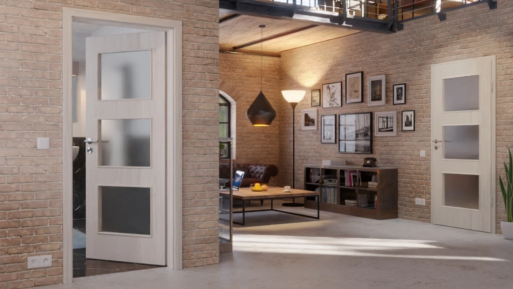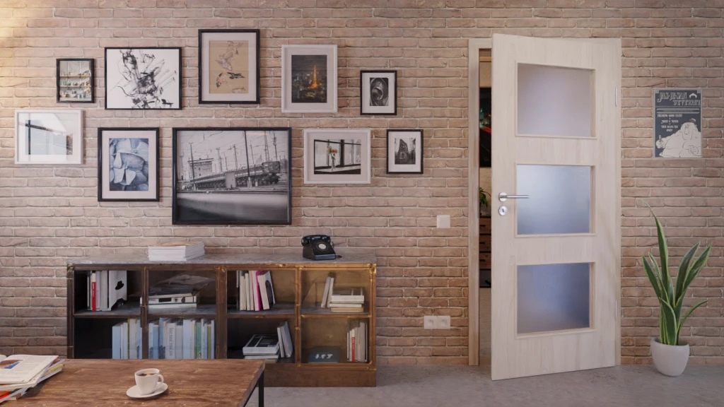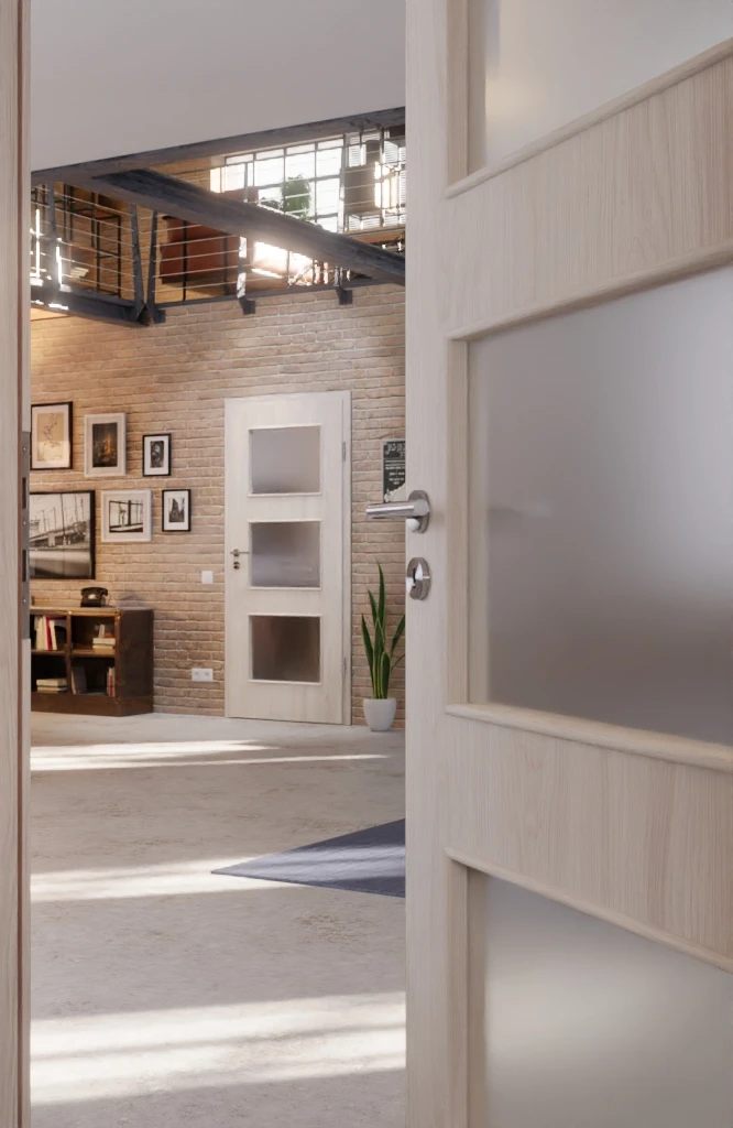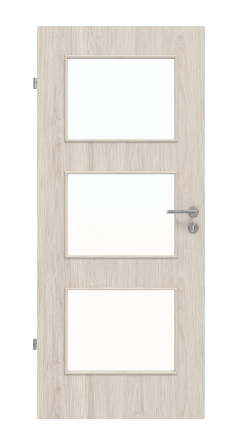 Drei rechteckige Lichtausschnitte erstrecken sich über nahezu das gesamte Türblatt. Dadurch gelangt viel Helligkeit hindurch, was wiederum zu einer harmonischen Gesamtstimmung beiträgt.