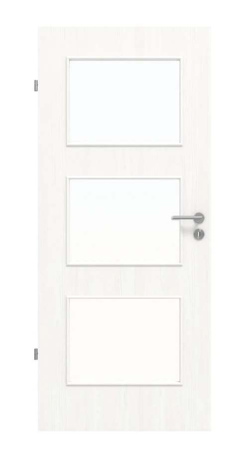 Drei rechteckige Lichtausschnitte erstrecken sich über nahezu das gesamte Türblatt. Dadurch gelangt viel Helligkeit hindurch, was wiederum zu einer harmonischen Gesamtstimmung beiträgt.