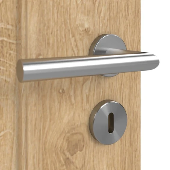 Auch starke Beanspruchungen verformen das mit einer Aufbau mit Vollspanplatte im Inneren ausgestatte Modell nicht. Die standardmäßig dreiteilig aufgebauten Türbänder stellen einen stabilen Halt in der Zarge sicher. Hinsichtlich der Türkante haben Sie die Wahl zwischen runder oder eckiger Form.