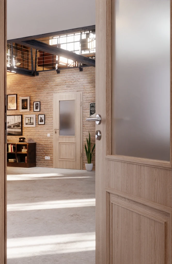 Langlebige Zimmertür in Graueiche mit solider Aufhängung: