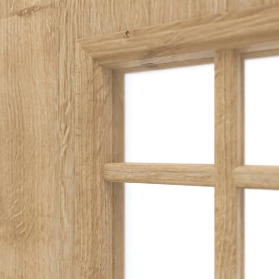 Die Profilleisten sorgen für ein klassisches Kassettenmuster, das mit dem natürlichen Look des Eichendekors harmoniert. Die Maserungen werden dank eingeprägter Struktur haptisch hervorgehoben. Durch den Lichtausschnitt wirkt Ihr Wohnraumambiente sehr offen und einladend.