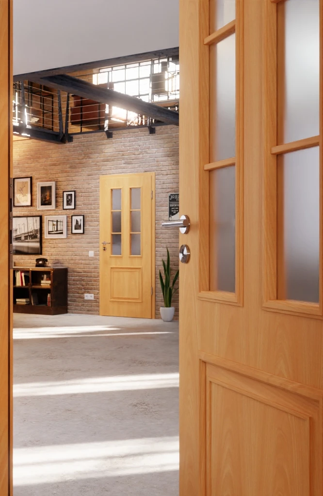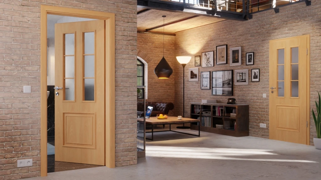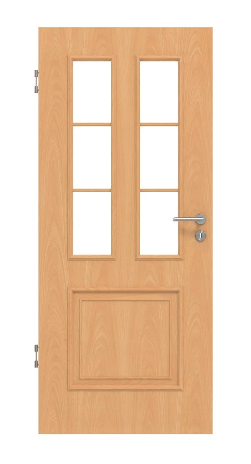 Die rotbraune Farbe des Buchendekors bringt Wärme in Ihre Wohnräume. Auf der natürlich gestalteten Oberfläche, die durch die eingeprägte Struktur haptisch spürbar wird, sind stilvolle Profilleisten und Sprossen angebracht. Die Glasausschnitte auf Augenhöhe lassen viel Licht in Ihre Räume dringen.