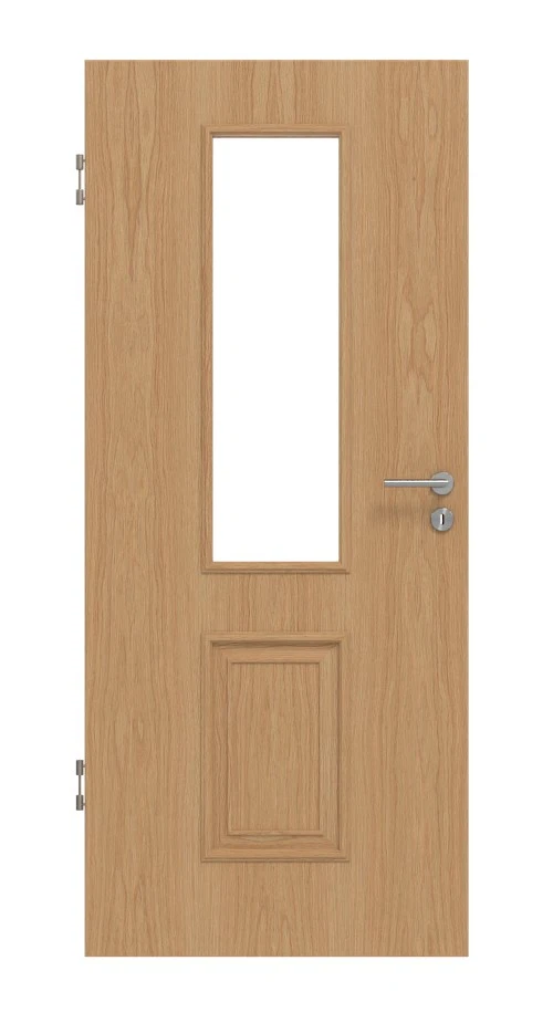 Auf dem natürlichen Eichendekor zeichnen sich dunkle Linien ab. Die eingeprägte Struktur hebt die Maserungen haptisch hervor. Dank der stilvollen Profilleisten erhält das Türblatt einen klassischen Look. Durch den Glasausschnitt im oberen Türbereich dringt viel Licht in Ihre Räume.