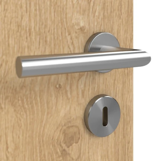 Die Vollspanplatte im Inneren der Tür des Modells bietet Stabilität auch bei hochfrequentierter Nutzung. Für einen langlebigen Halt in der Zarge sorgen die Türbänder, die bereits im Standard dreiteilig sind. Zu haben ist das Modell mit runder oder eckiger Türkante.