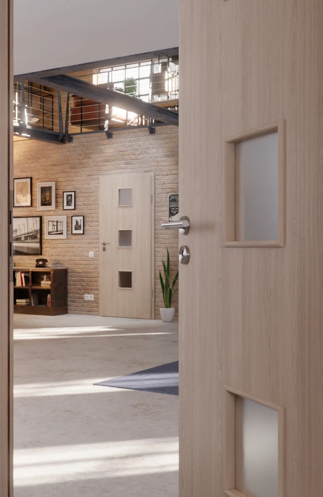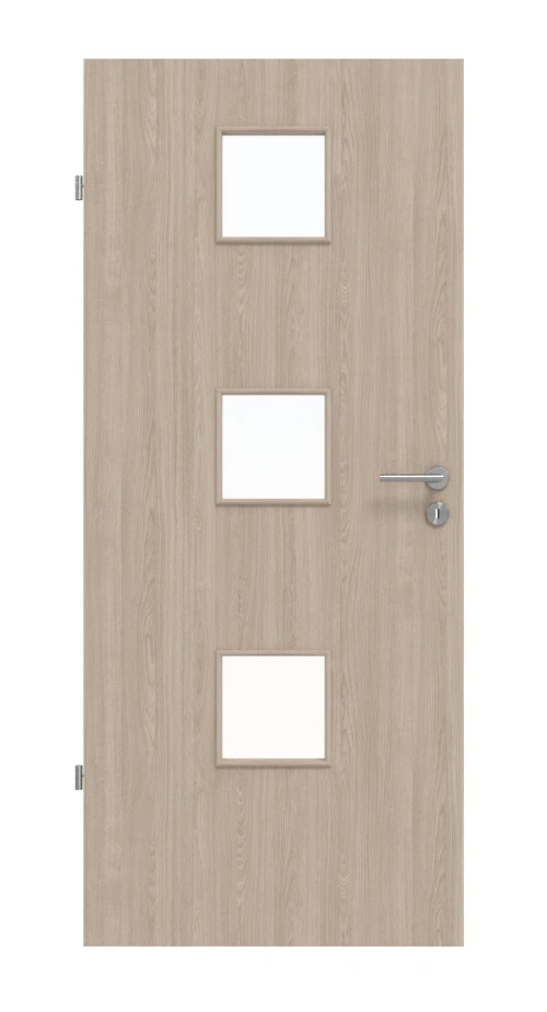 Im Türblatt befinden sich drei kleinere, quadratische Lichtausschnitte, die in Kombination eine interessante Optik ergeben. Dadurch gelangt gleichzeitig auch etwas Helligkeit in Ihren Raum.