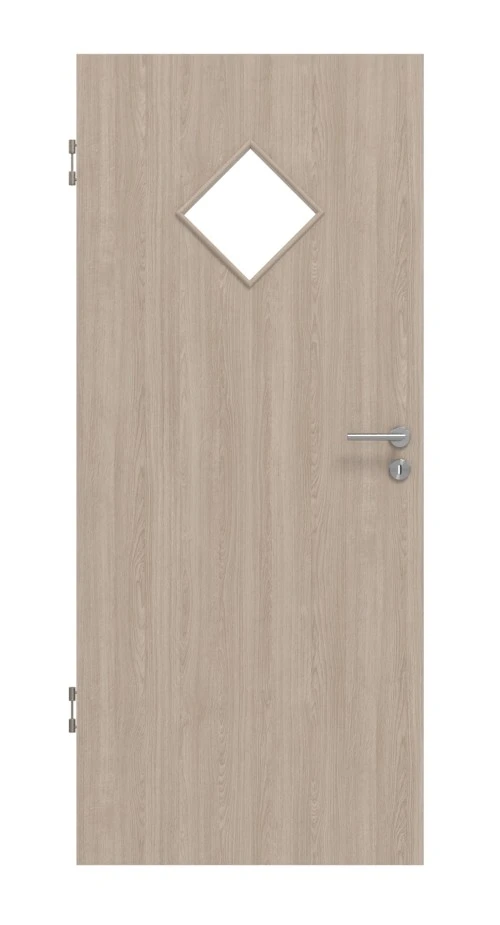 Der Lichtausschnitt in Rauten-Form ist das optische Highlight des Türblatts. Er ist eine interessante Alternative zum Bullauge und lässt ein wenig Helligkeit in Ihren Raum.