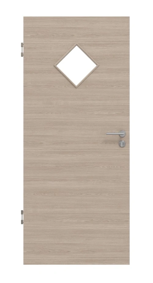 Der Lichtausschnitt in Rauten-Form ist das optische Highlight des Türblatts. Er ist eine interessante Alternative zum Bullauge und lässt ein wenig Helligkeit in Ihren Raum.