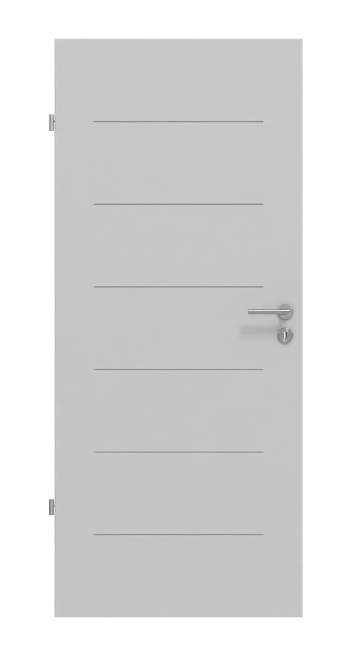 Sechs waagerechte Fugen sind in das Türblatt eingelassen. Zusammen mit der Graulackierung wird das Modell zum edlen Blickfang in Ihrem Zuhause.
