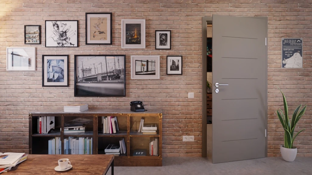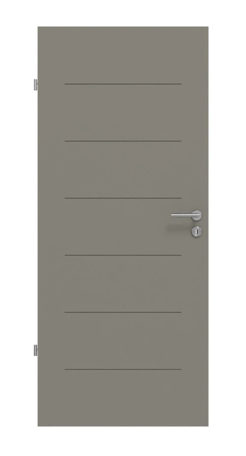 Sechs waagerechte Fugen sind in das Türblatt eingelassen. Zusammen mit der Graulackierung wird das Modell zum edlen Blickfang in Ihrem Zuhause.