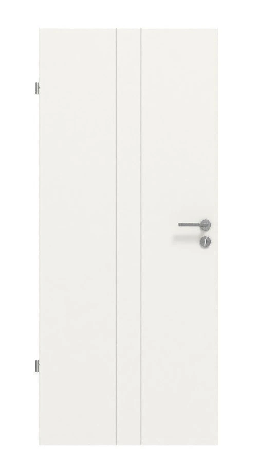Über die gesamte Türlänge verlaufen zwei senkrechte Fugen in der Mitte des Türblatts. Die geschmackvolle Weißlackierung garantiert eine moderne und dennoch schlichte Optik, die sich jedem Wohnraumflair anpasst.
