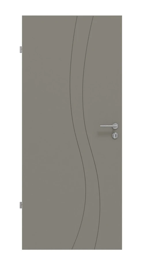 Dank der ästhetischen Graulackierung entsteht ein exklusives Design, das sich jedem Wohnraumambiente anpasst. Über die gesamte Türlänge verlaufen zwei geschwungene Fugen in der Mitte des Türblatts.