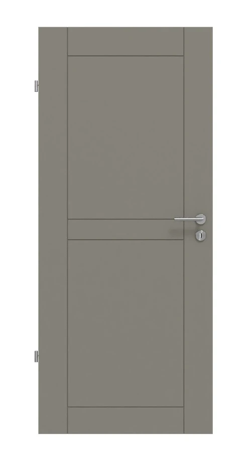 Dank der eingefrästen Fugen entsteht ein geometrisches Muster auf dem Türblatt. Die ästhetische Graulackierung verleiht dem Modell einen brillanten Glanz.