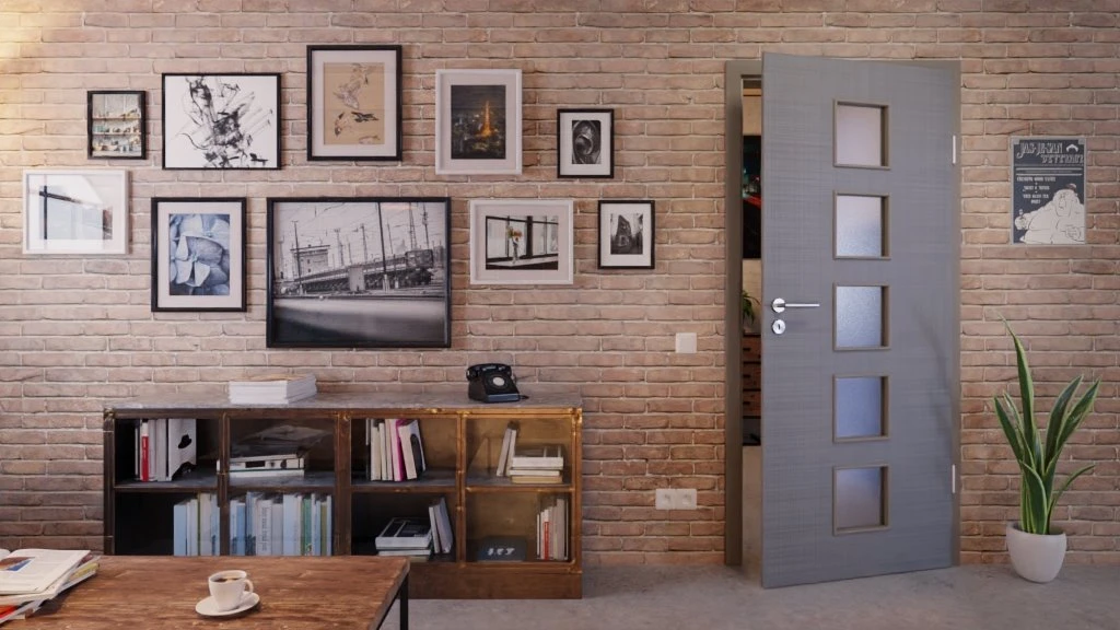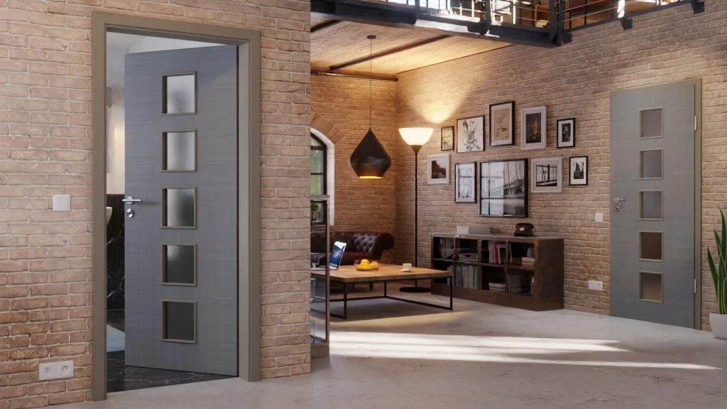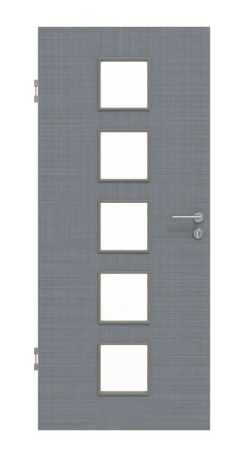 Durch die fünf kleinen Lichtausschnitte gelangt Helligkeit und damit auch Freundlichkeit in Ihre Räume. Auf dem Türblatt zeichnen sich feine Linien ab, die für einen natürlichen Leinenlook sorgen. Diese werden durch die eingeprägte Struktur haptisch hervorgehoben.