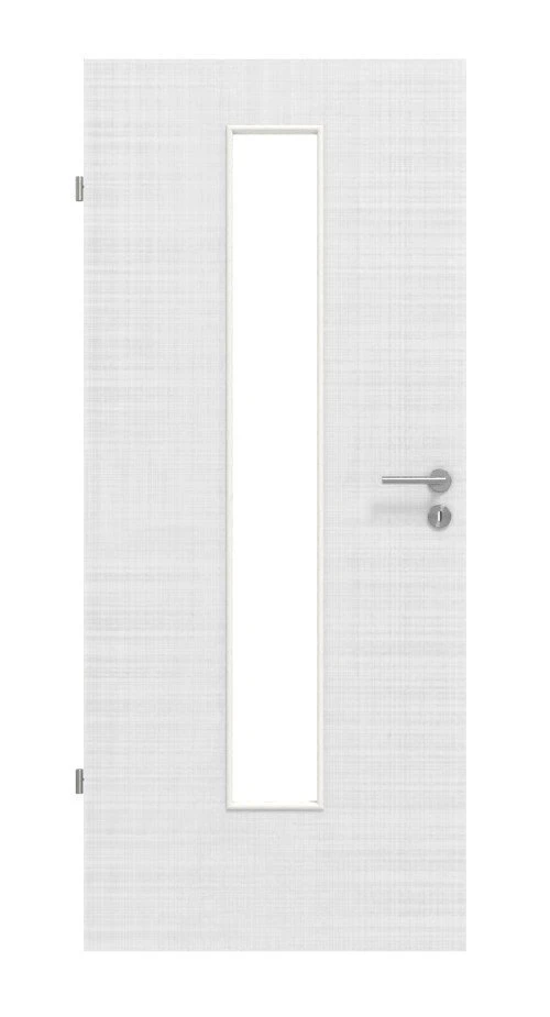 Feine Linien, die durch die eingeprägte Struktur haptisch hervorgehoben werden, prägen das weiße Leinendekor. Dank des schmalen Glasausschnitts in der Mitte des Türblatts gelangt viel Licht in Ihr Zuhause.